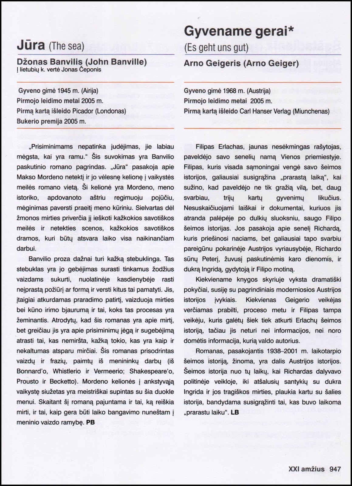 Maištinga siela John Banville "Jūra" / "The Sea", Arno Geiger "Gyvename gerai" / "Es geht uns gut"