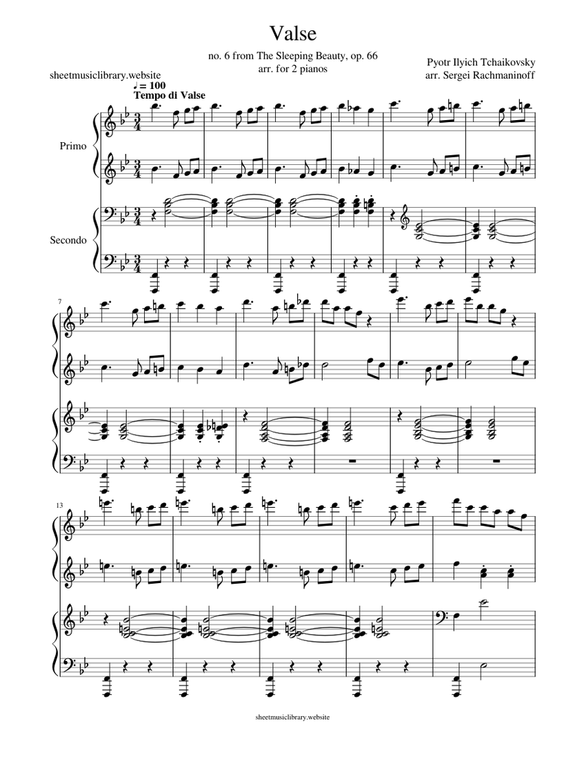 Tchaikovsky Waltz From The Sleeping Beauty Suite Rachmaninoff Four Hands Sheet music for Piano