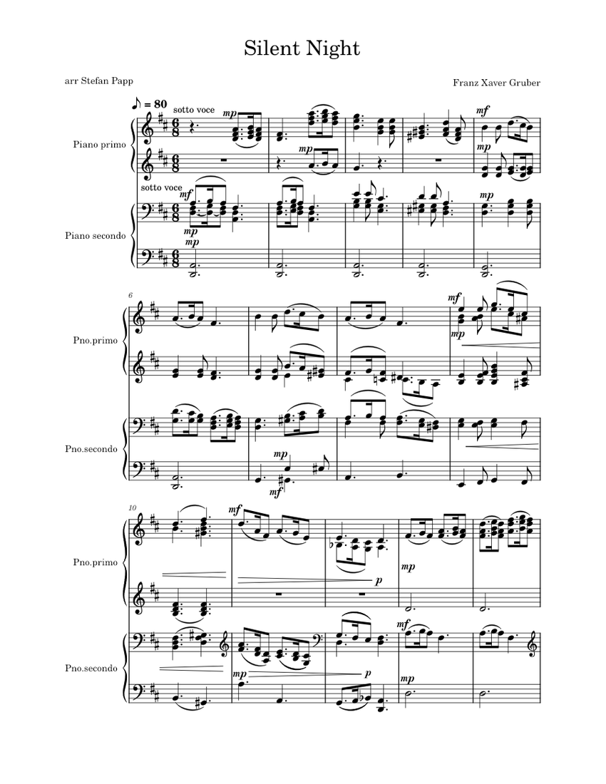 Silent Night Franz Xaver Gruber, piano 4 hands arr Stefan Papp Sheet music for Piano (Piano