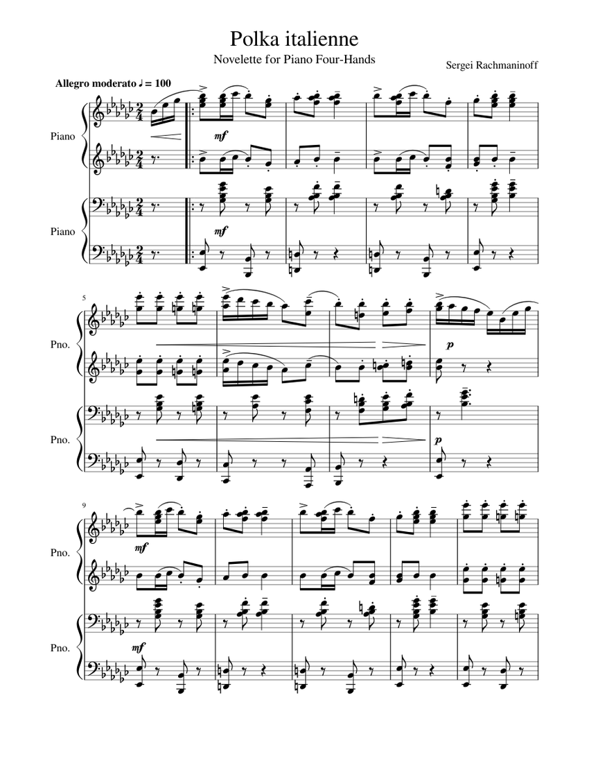 Italian Polka Sergei Rachmaninoff Sheet music for Piano (Piano Four Hand)