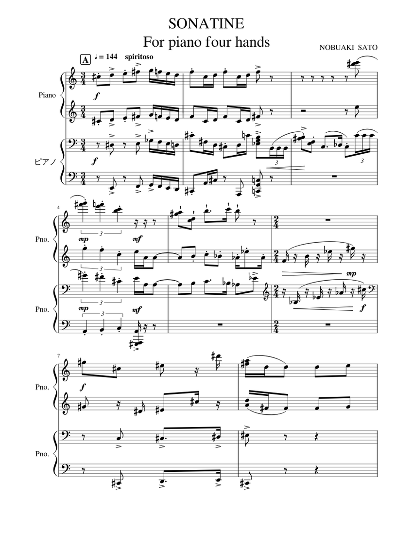 SONATINE FOR PIANO FOUR HANDS Sheet music for Piano (Piano Duo)