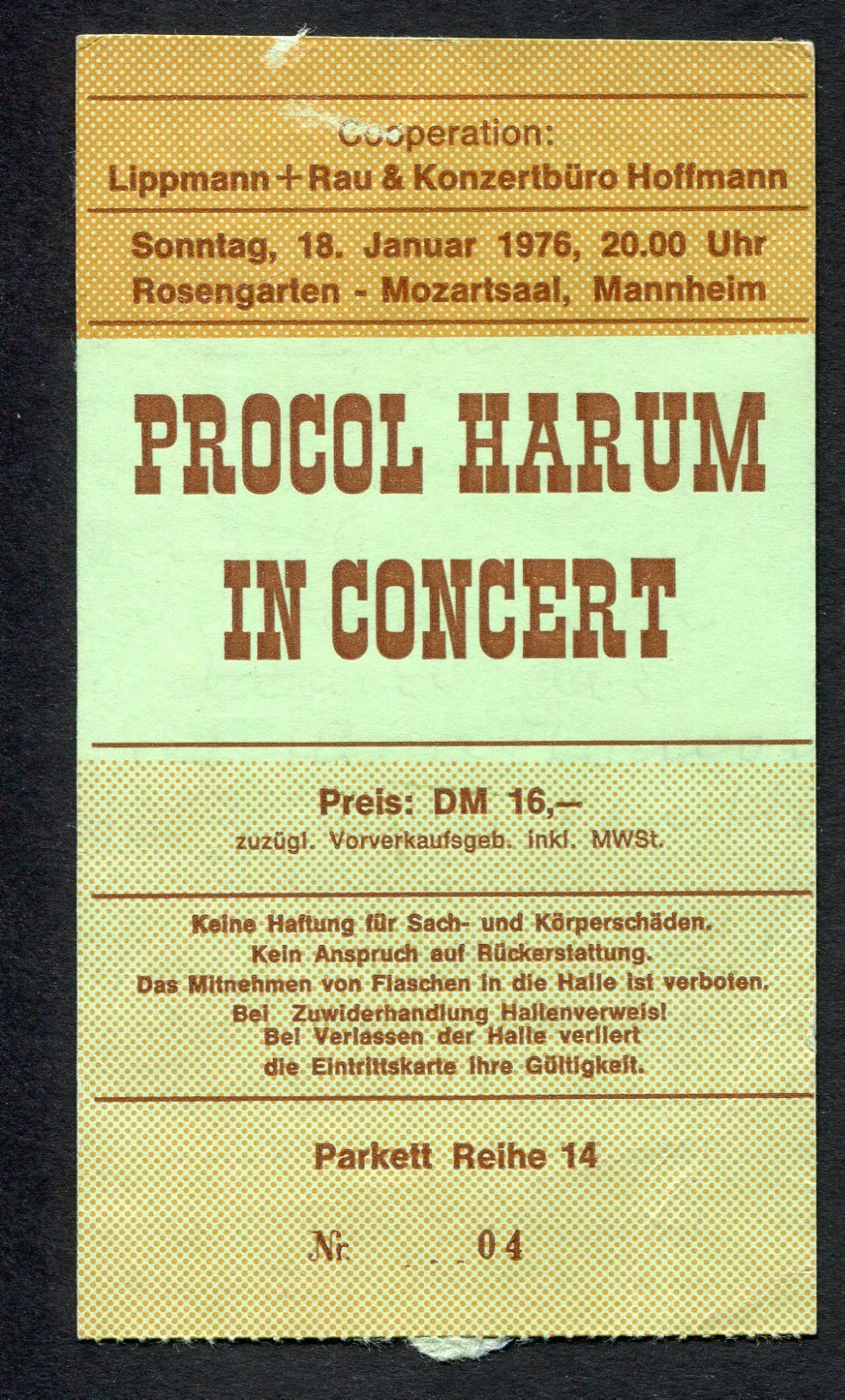 Ticket PG Rosengarten Mozartsaal Mannheim 16th September The Genesis Archive