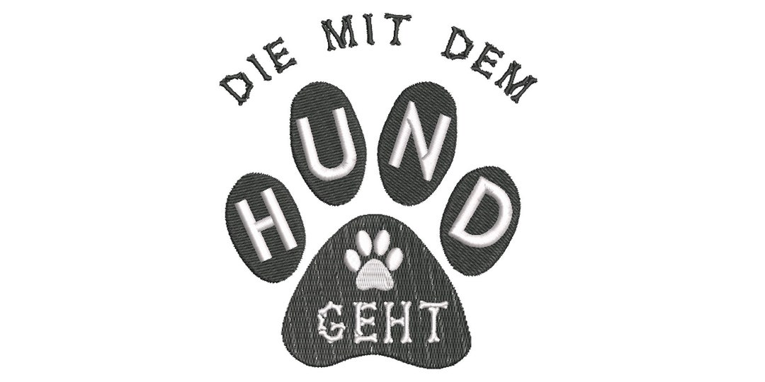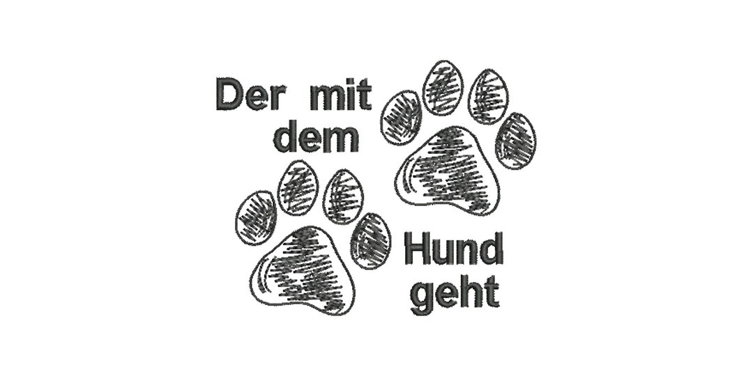 Stickdatei Die mit dem Hund geht Spruch Hund Maschinenstickerei Tiere Krallen Pfote 13x18 Rahmen