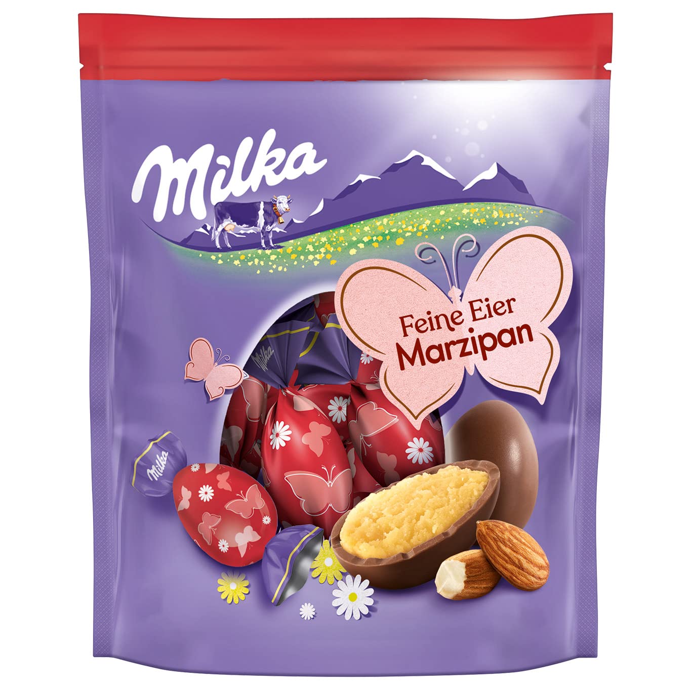 Milka Feine Eier Marzipan 1 x 90g, Zartschmelzende Alpenmilch Schokolade mit feinem Marzipan